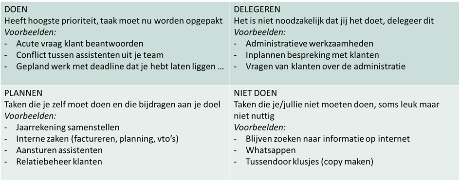 • Taken die niet belangrijk en niet urgent, zou je (en jullie) “NIET moeten DOEN”